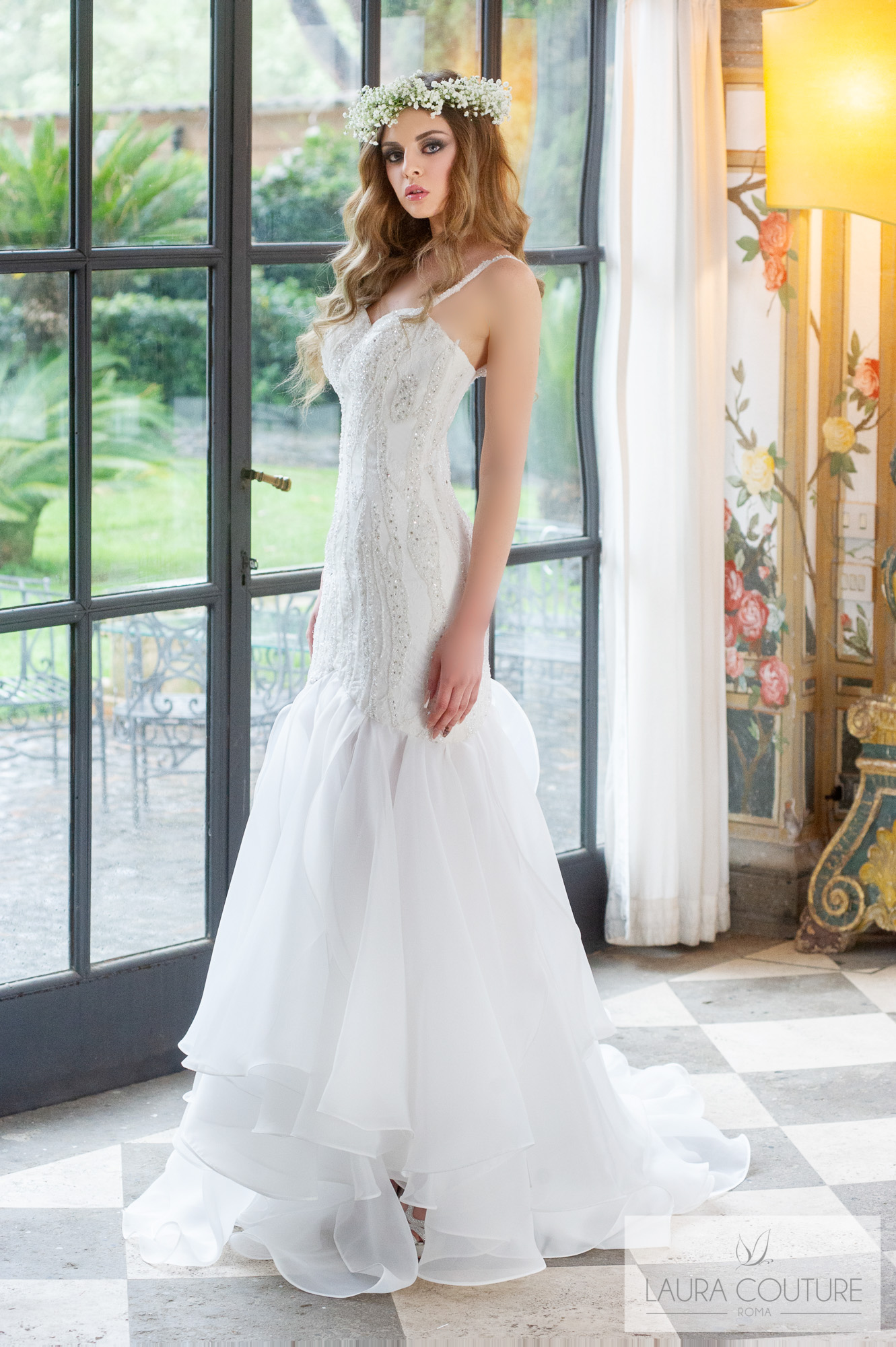 Abito a sirena in pizzo e organza