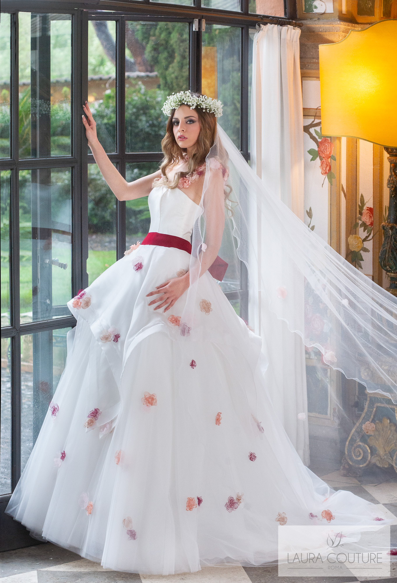 Abito in tulle con fiori 3D