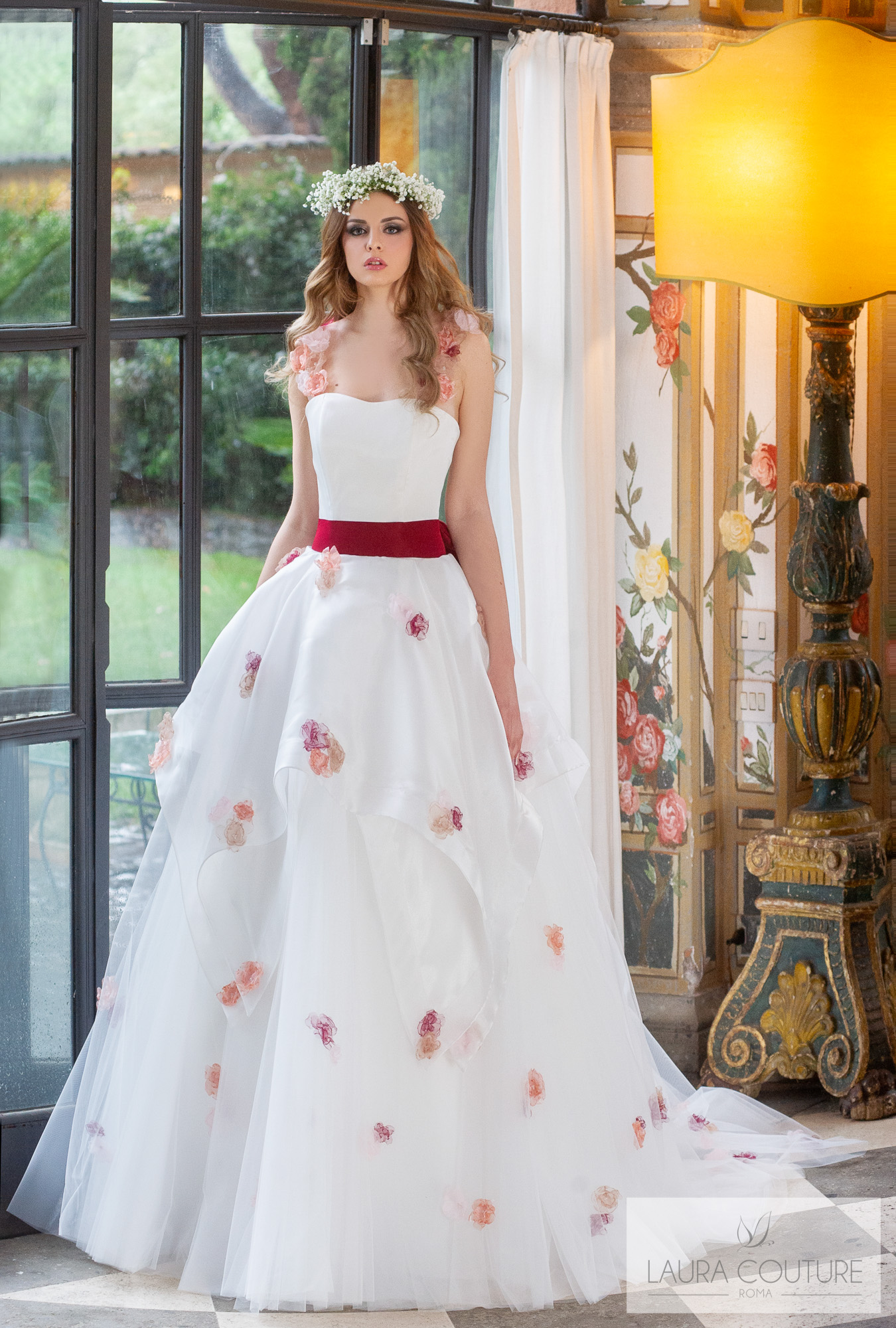 Abito in organza con fiori colorati